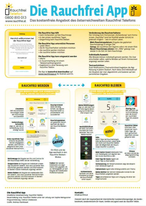 Die Rauchfrei App begleitet Sie beim Rauchstopp! Sie ist griffbereit, wann immer Sie Unterstützung brauchen! Wir haben die App entwickelt, um Ihnen jederzeit Hilfestellung zu bieten. Die App kann begleitend zu Entwöhnprogrammen und auch allein genutzt werden. Es ist möglich, nur einzelne Elemente, wie das Rauchprotokoll oder den Gewinnzähler zu nutzen oder alle Tools der App zu verwenden, um vielfältige Unterstützung bei der Vorbereitung, der Umsetzung und der Aufrechterhaltung der Rauchfreiheit zu bekommen. Motivierende Textnachrichten begleiten Sie über einige Monate hindurch, wenn Sie das möchten!